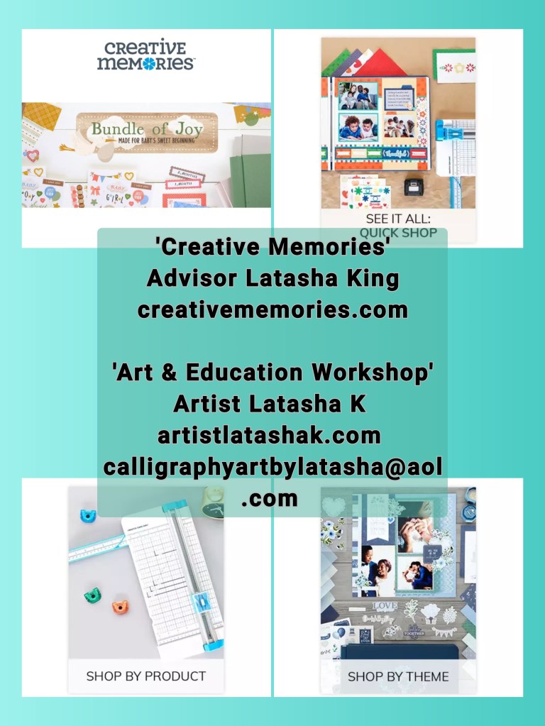 My workshop features Creative🎨 Memories 📷 scrapbooking products. Website & Advisor Search Latasha King https://www.creativememories.com