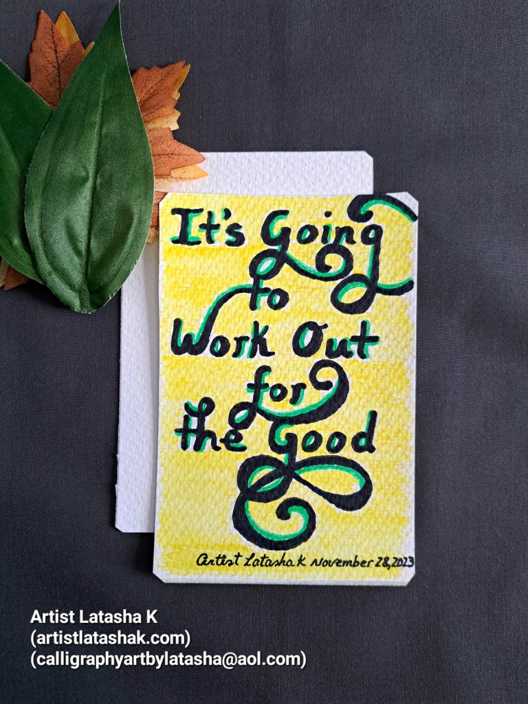 Artist Latasha K specialty is in drawing, painting, calligraphy, and lettering. She enjoy creating original and print artworks. Latasha’s fine art greetings card line is available for an occasion as well as inspiration. Card options are flat, folded, printable, and e-cards. (calligraphyartbylatasha@aol.com)