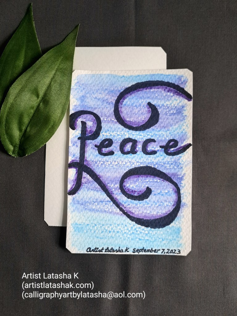 Hello, I am Artist Latasha K. I was born in the state of Georgia, USA. My specialty is in drawing, painting, calligraphy, and lettering. I enjoy creating fine art, calligraphy, lettering, and illustrating educational materials. My works are inspirational, elegant, and professional. calligraphyartbylatasha@aol.com